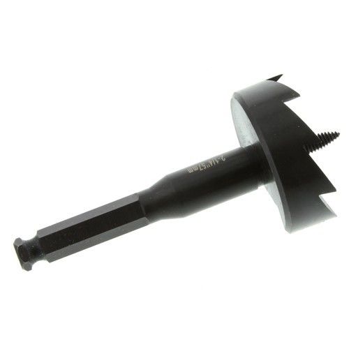 لقمة فورستنر ذاتية التغذية من الفولاذ عالي الكربون مع لمسة نهائية سوداء بقطع واحد، مصممة لتطبيقات النجارة الاحترافية.